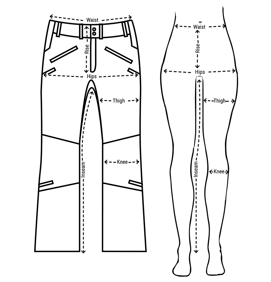 KNEE: Measure full circumference of knee. RISE: This is the measurement from the crotch to the top of the waistband.