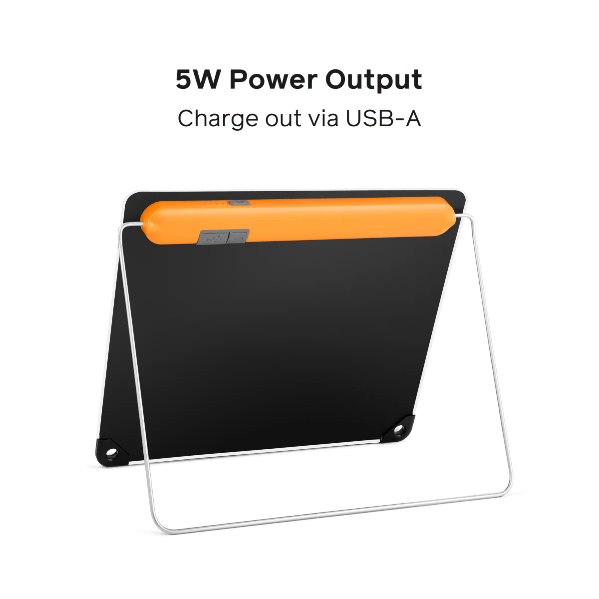 Get the most from the sun with the lightweight & portable BioLite SolarPanel 5+. Featuring BioLite's Optimal Sun System, an integrated sundial aligns you to the sun to capture direct rays while a 360 degree kickstand simplifies positioning on uneven terrain. The 3,200mAh onboard battery stores energy for later, allowing you to charge devices when you need it most. Power phones, tablets, and BioLite gear with this ultraslim 5-Watt panel.
