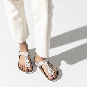 Hot for the summer is the Birkenstock Crystal Rose Gizeh. The lovely light floral pattern means this is a genuine classic and a stylish all-rounder. Made with Birko-Flor upper and with its additional foam layer, the soft footbed offers extra comfort.
