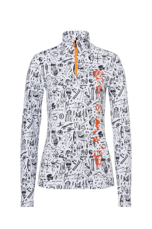 This BOGNER FIRE + ICE Ilvy 3 printed ski base layer is cut for a slim fit. Designed to regulate your body heat, it's made with stretch fabric and features a semi-zip fastening at the collar in contrasting orange for unrestricted movement. It may be covered in cartoons, but this top is no laughing matter.