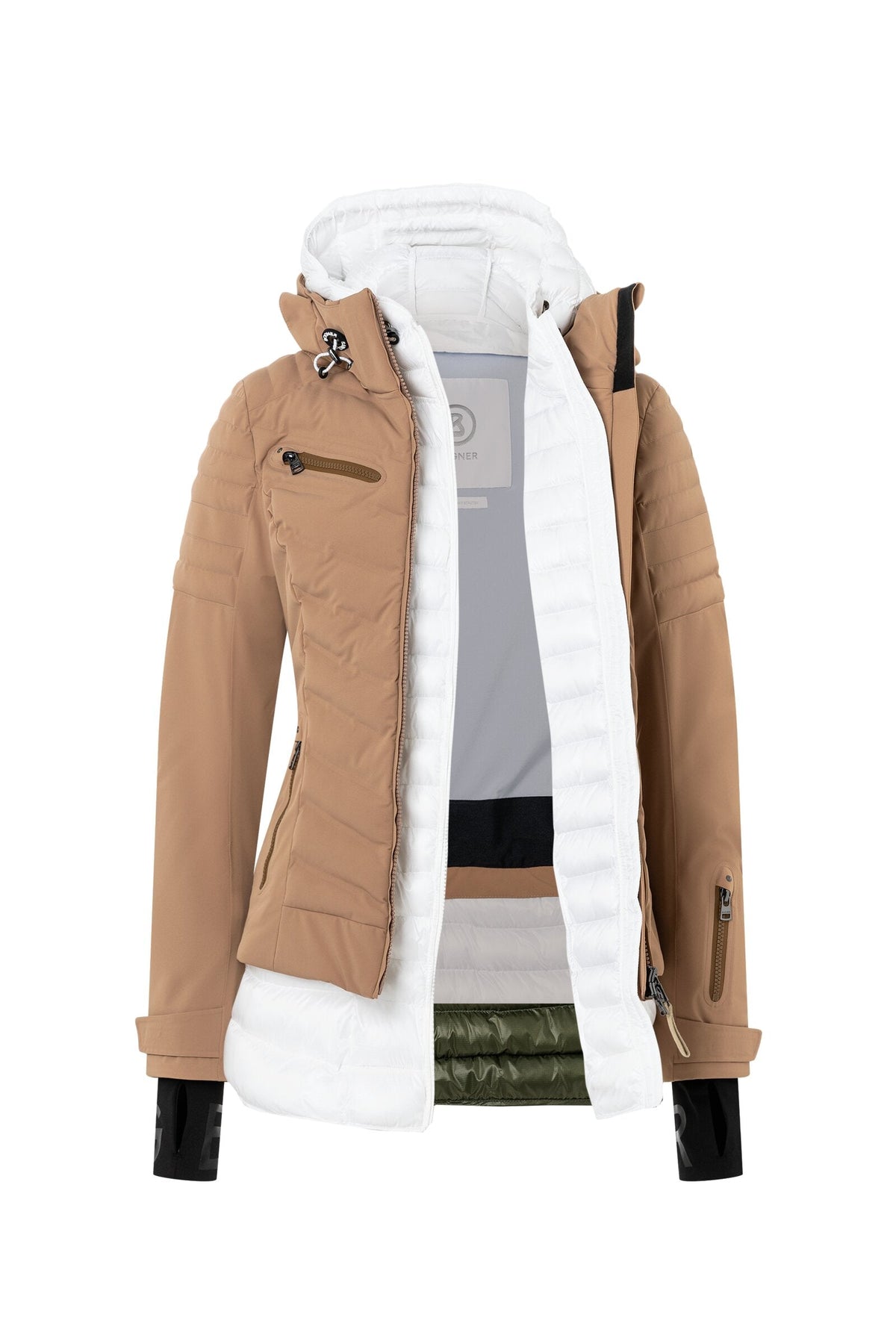 Bogner Micela-T Women’s Ski Jacket is a multifaceted functional piece. The double-layered construction with four-way stretch in technical fibers provides a high level of waterproofing with bonded and taped seams.