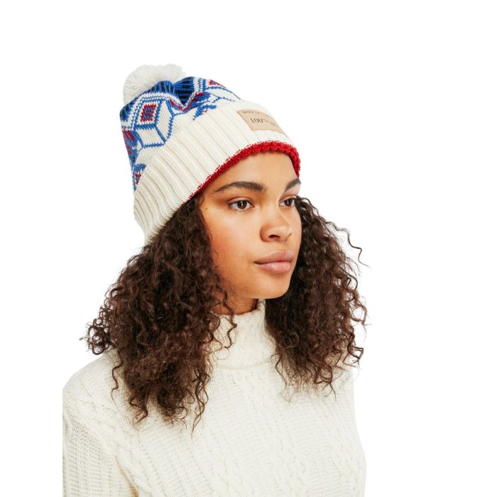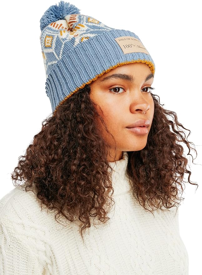 The Dale Of Norway Vilja hat is made with 100% lightweight wool and features a rib knit brim with skin soft merino wool on the inside. A wool hat with enlarged and simplified pattern featuring the classic Norwegian eight-petal rose. There’s a note of the 50s and the 60s in the hat’s bold pattern.