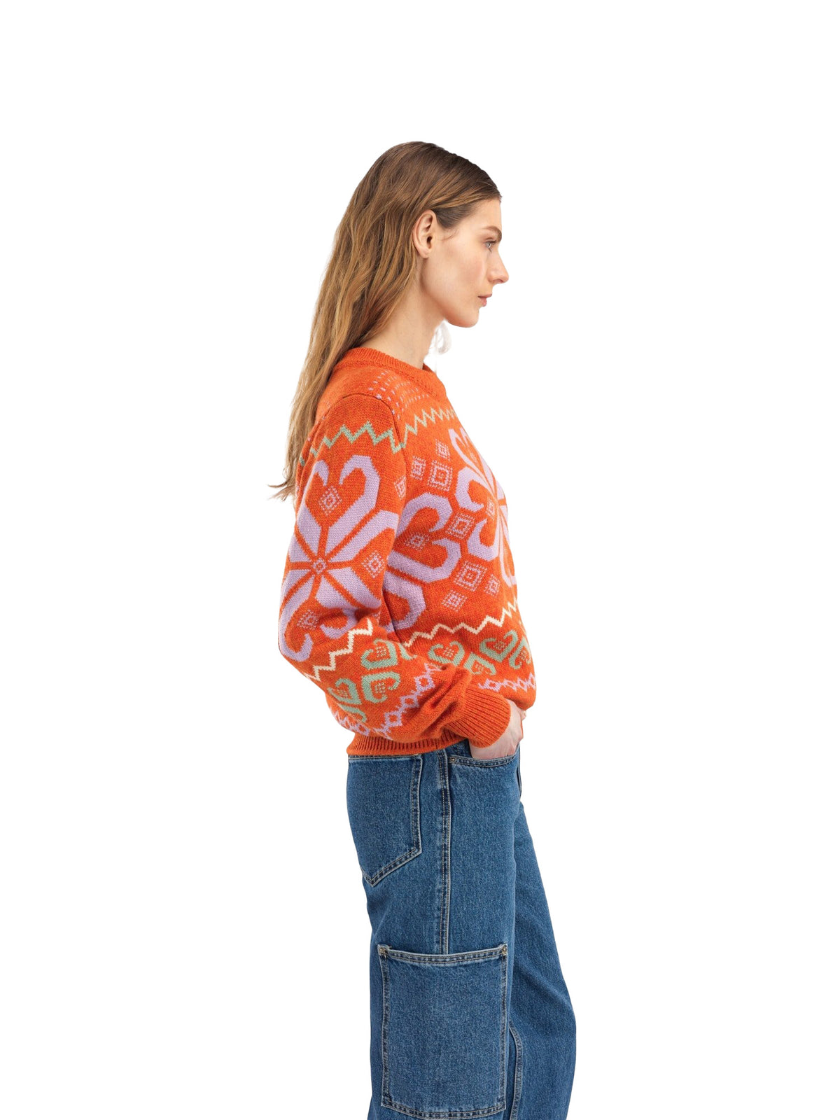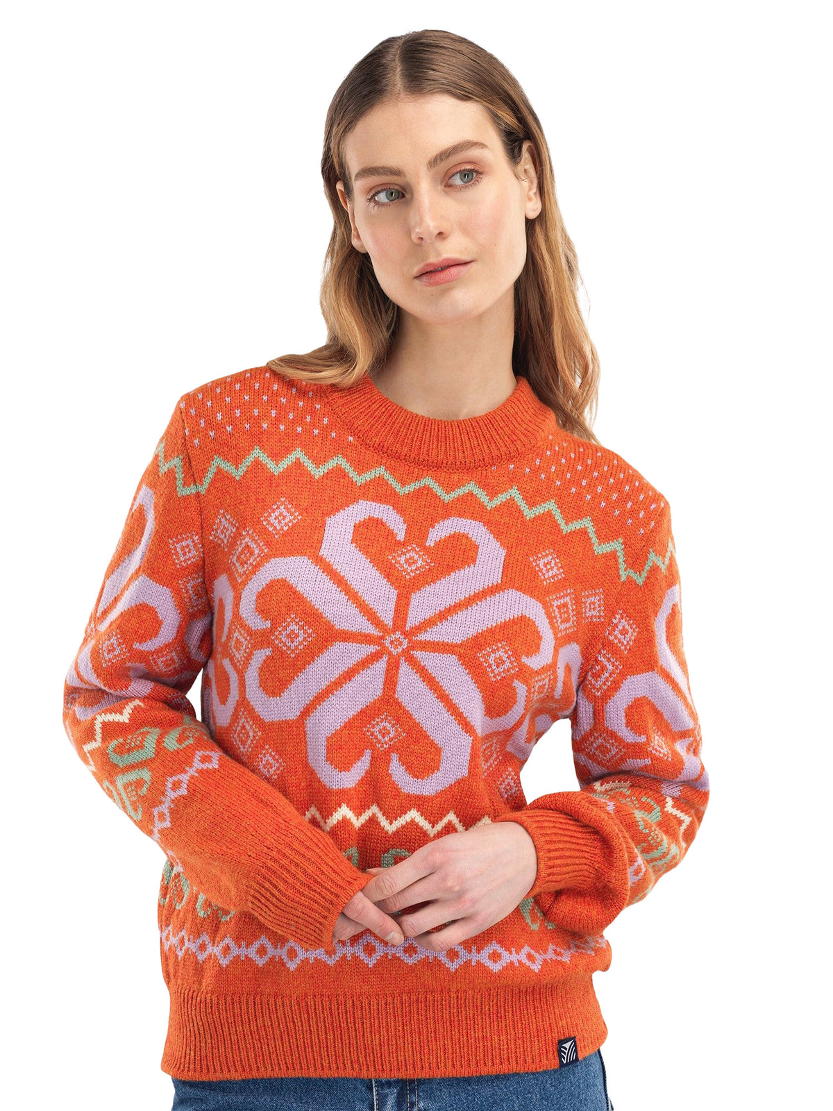 Falkeberg sweater is a beautiful round neck sweater, knitted in soft merino wool. The 4-colored Norwegian pattern is from our official Olympic sweater back in 1984, and has ribbed neck, sleeves and hem.