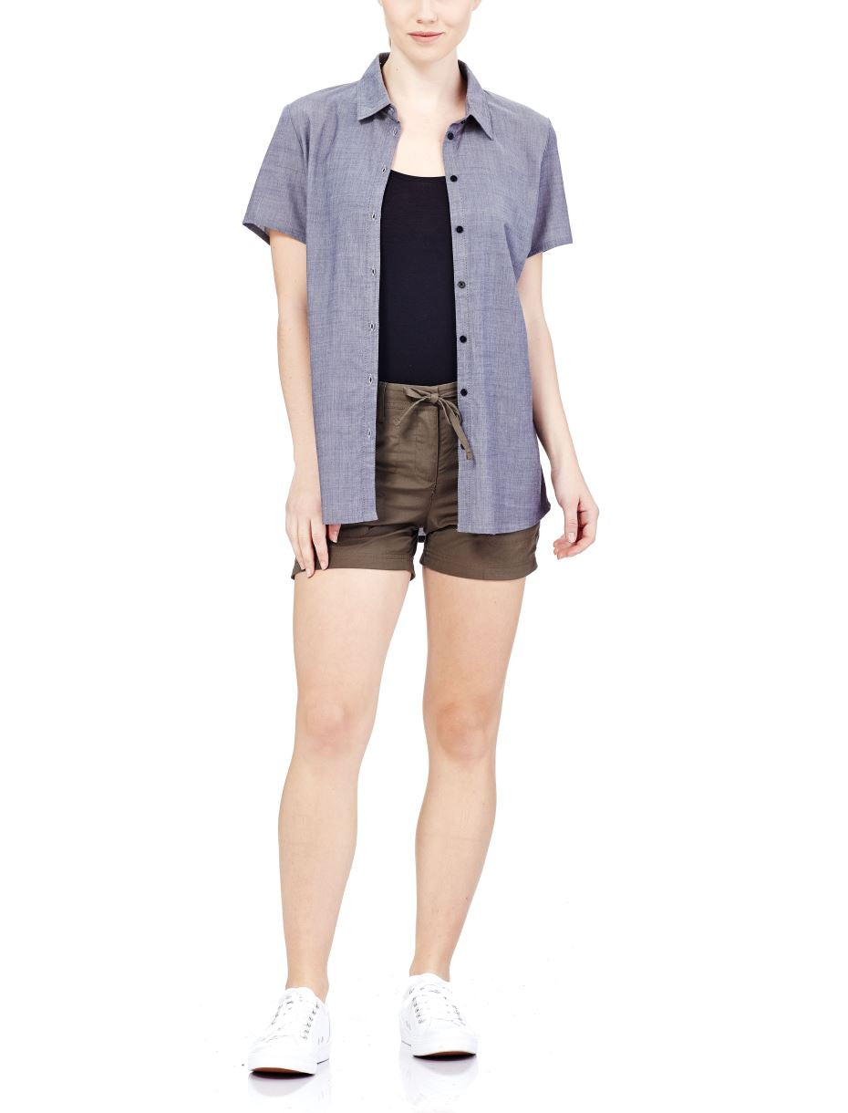 The shirt version of Icebreaker's award-winning travel dress, the Kala Short Sleeve shirt is a lightweight summer shirt that’s relaxed yet sophisticated, perfect for both nights around town and travels abroad.