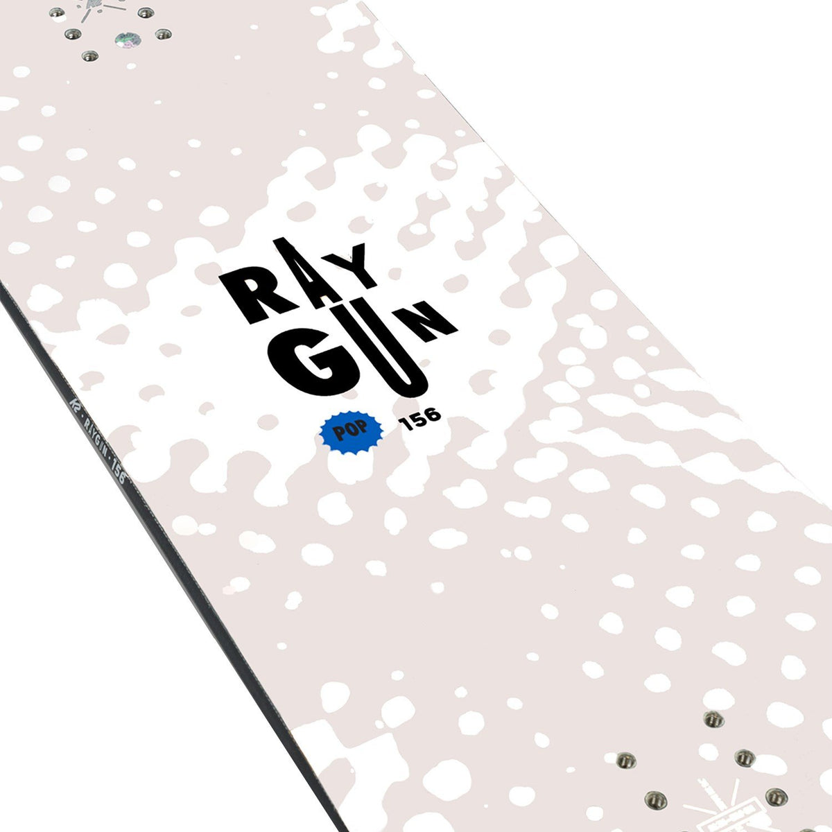 Point, shoot, and ride. The Raygun Pop is your trusty companion for conquering the entire mountain. Its directional twin shape and Combination Camber profile deliver the perfect mix of edge hold and float, while the Aspen core keeps things lively. Whether you're carving groomers or exploring off-piste, this board has your back.