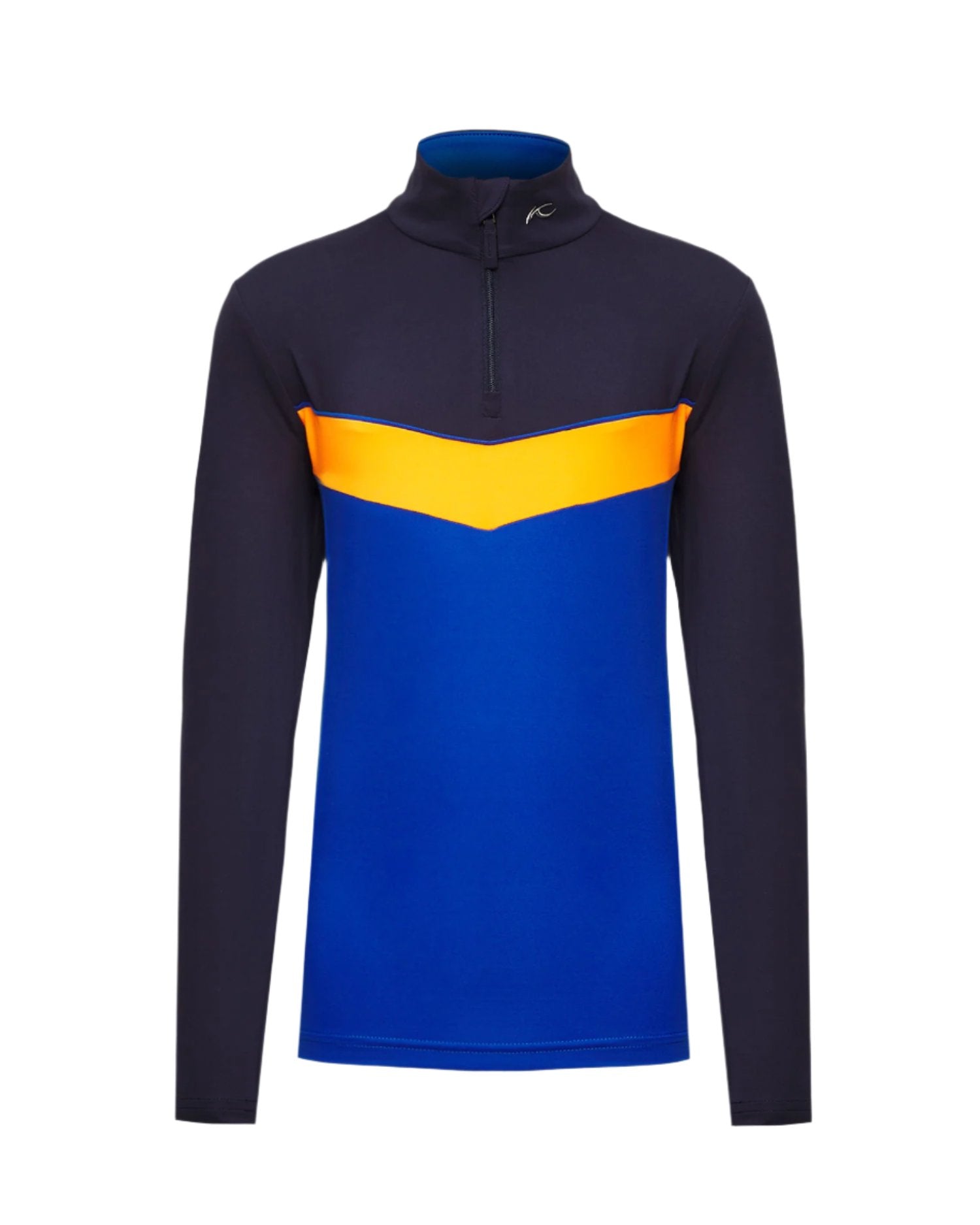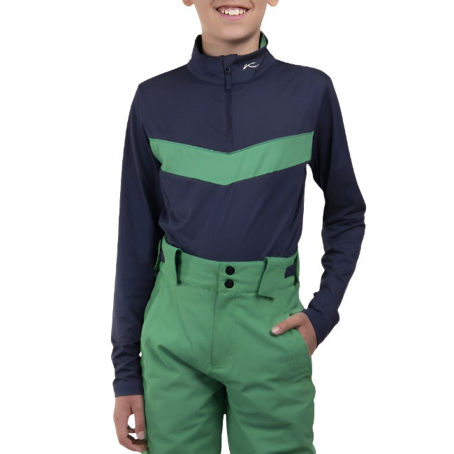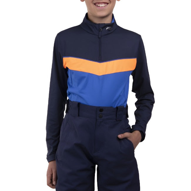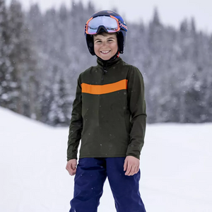 Boys will power through a day on piste in this ultra-warm, peached half-zip. It features fourway stretch, and quick-drying properties for wearing comfort. With its sporty design, he will look great and perform great on the slopes.