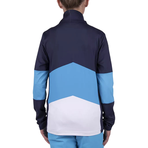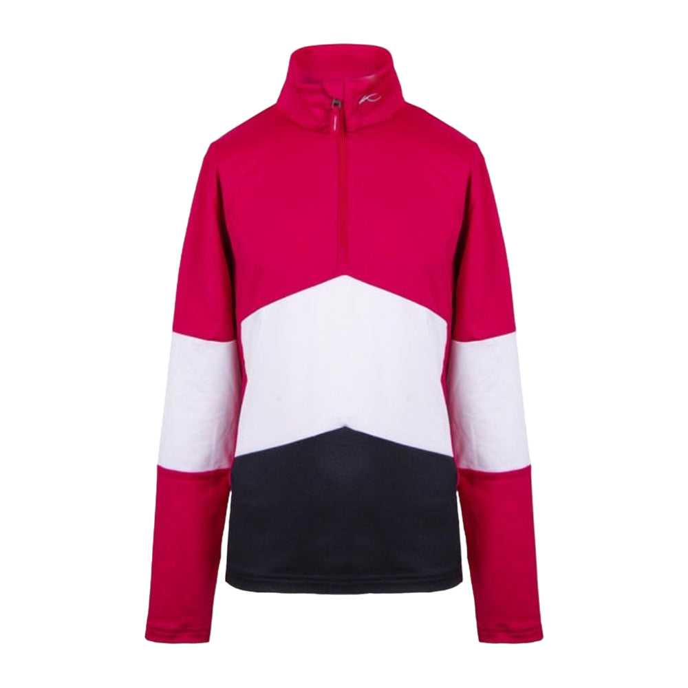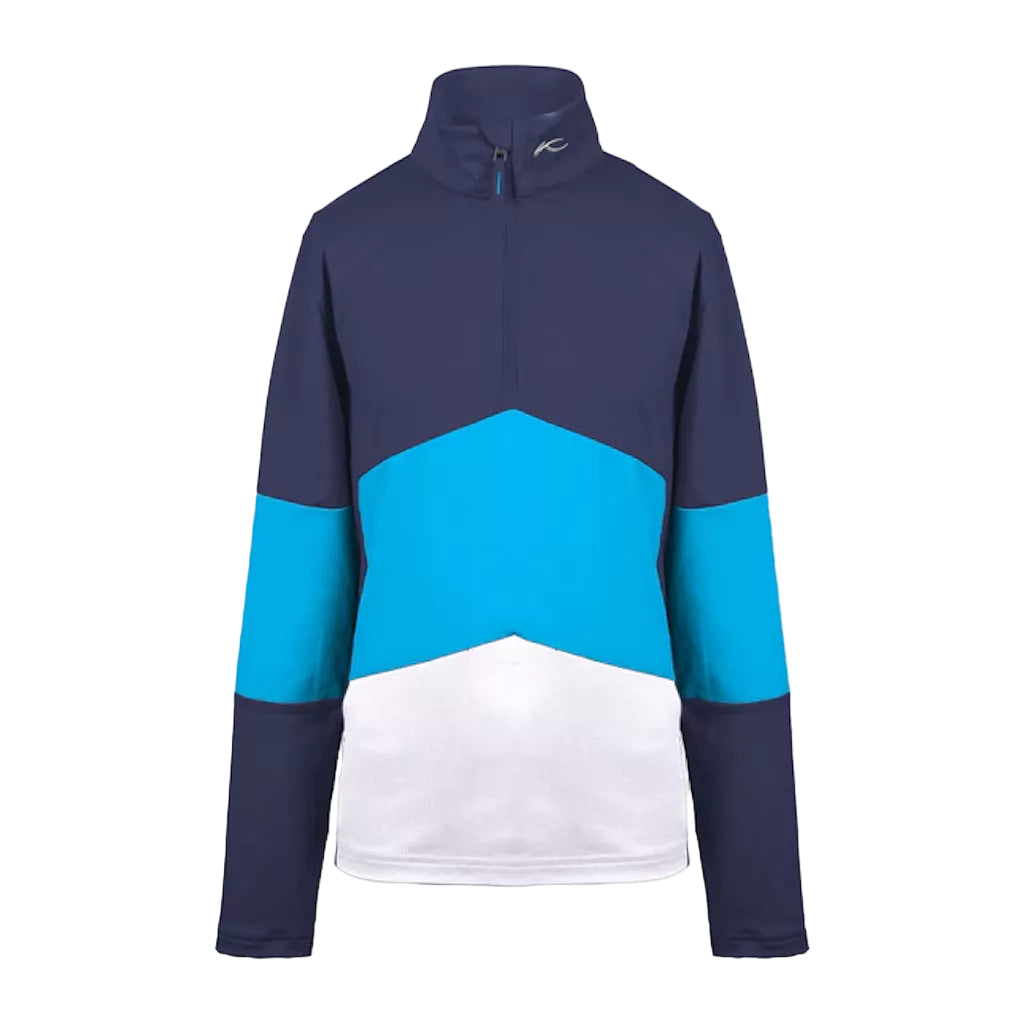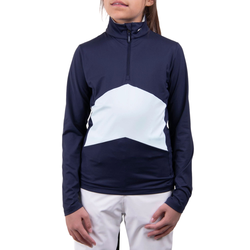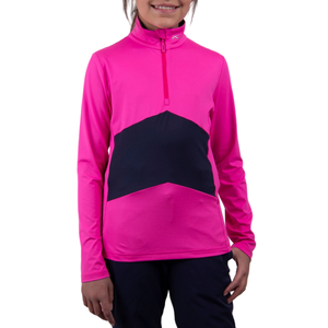 Girls will power through a day on piste in this ultra-warm, peached half-zip. It features four-way stretch, and quick-drying properties for wearing comfort. With its chevron block design, your she will look great and perform great on the slopes.