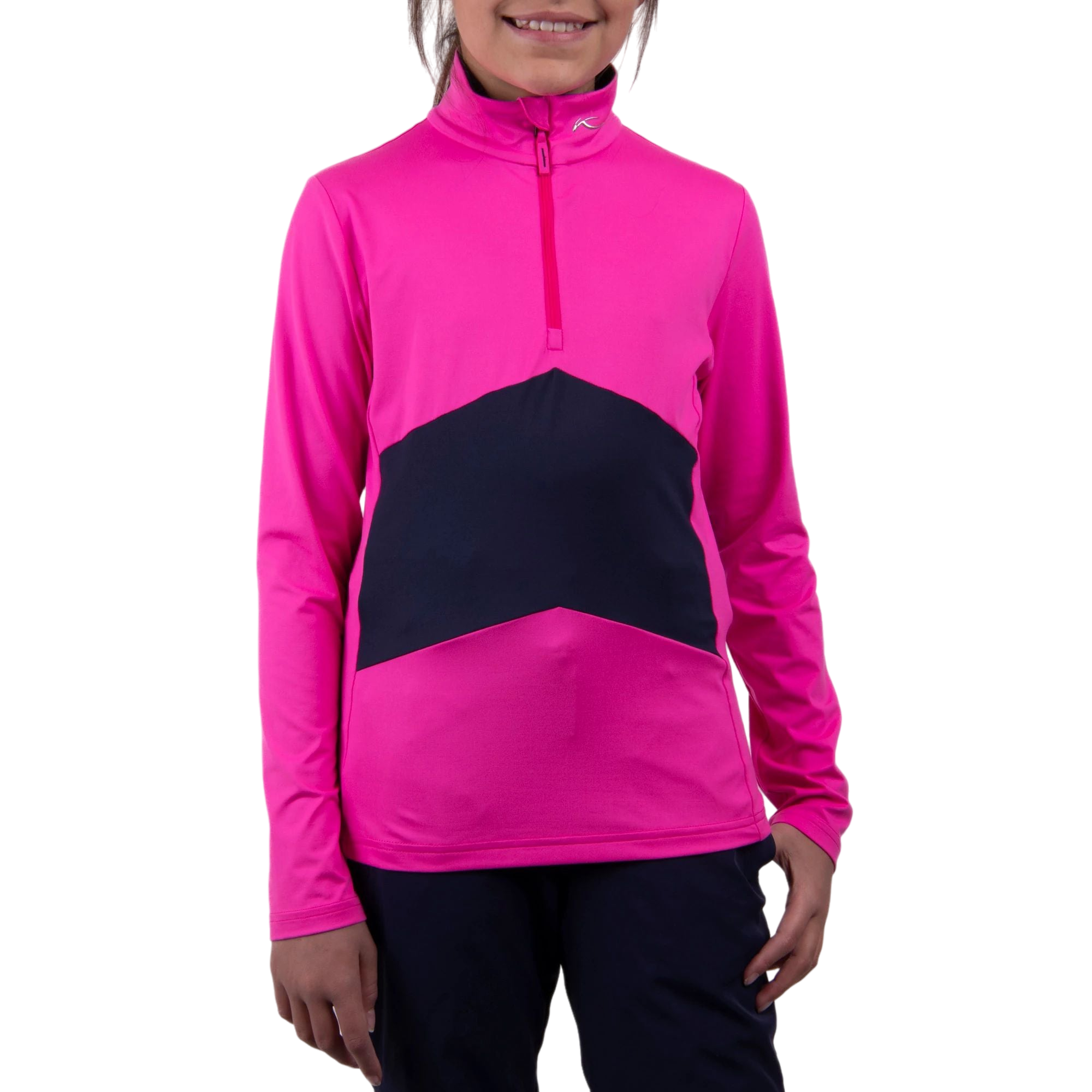 The Girls' Julie Midlayer is the ultimate layering piece for cool temperatures. This four-way-stretch style is engineered with a brushed fleece that quick-drying and warm for ultimate comfort. It can easily be worn under any of our girls' ski jackets, but it is also a great midlayer for everyday wear.
