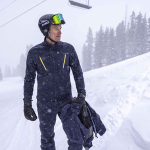 - Detachable adjustable powder skirt with anti-slide elastic and jacket to pants snap connection