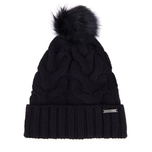 Enjoy luxurious warmth and finish off your winter outfit in this Merino blend beanie with ultra-soft velour lining, faux fur pom and cable knit design. The women's POM Beanie is a stylish winter essential for on and off the mountain.