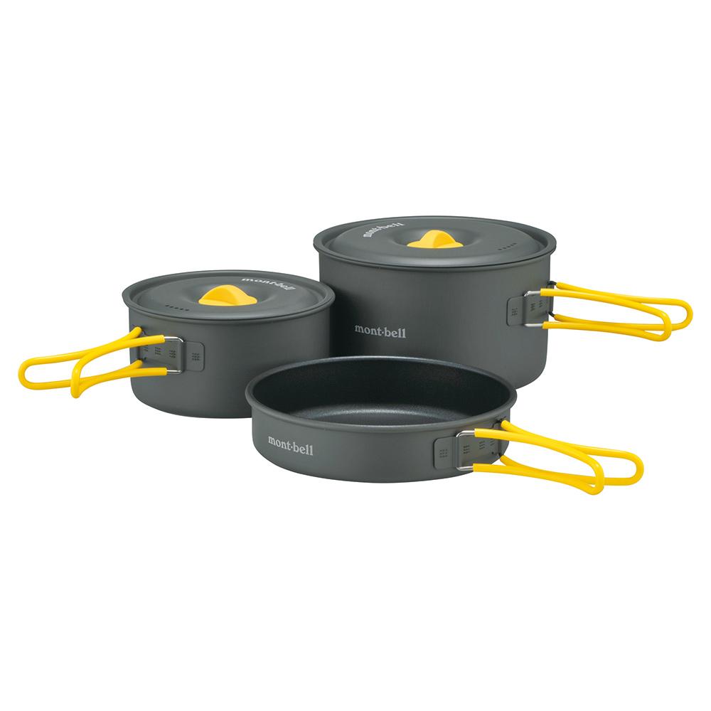 Wide mouth aluminum cooker with heat resistant handle, measurement lines inside, steam vents. Suitable for solo use or when cooking for a group. Includes the Alpine Cooker 14, Alpine Cooker 16, and Alpine Frying Pan 16.
