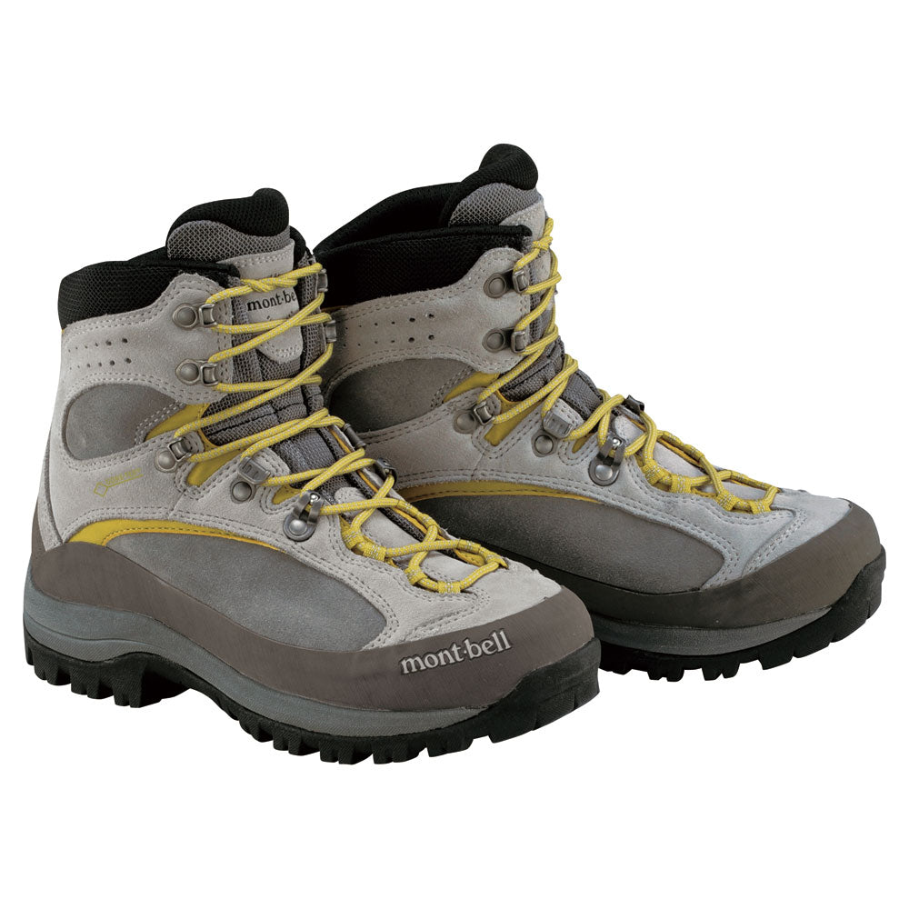 The pattern is cut to prevent ankle turning, enabling smoother footwork for those inexperienced with stiff climbing boots. The upper is made using GORE-TEX fabric, which boasts the world’s highest level of waterproof breathability. Covering the scuff-prone front foot area and heel with 1.6 mm thick Suede Leather provides just the right level of firmness and an outstanding resistance to wear and tear. The area from the toes to the heel is strengthened with a rubber rand, further improving the shoes’ durability. Made with Montbell's original TRAIL GRIPPER sole, which has shown outstanding gripping strength even on wet rocks and wooded trails.