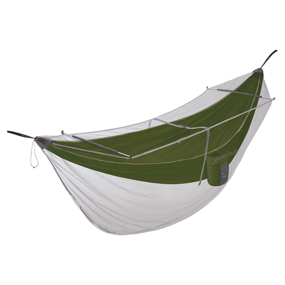 This net protects you from biting insects while you are in a hammock. Designed primarily for use with Montbell's Field Hammock (sold separately), it is also compatible with other hammocks within certain size ranges. It stores compactly making it easy to bring with you on outings. Poles create a space around your head for feeling more open and comfortable.