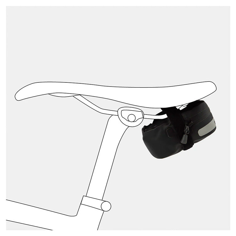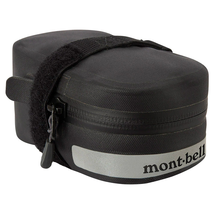 The Montbell Compact Saddle Bag easily attaches to the saddle with hook-and-loop straps, providing storage for essential tools and tubes while out riding. Features welded seams to enhance rain protection.