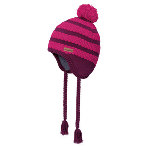 Thick knit cap topped off with a pom pom and tassles. Inner and outer layers are seamlessly knitted as one, ensuring great stretch, fit and comfort
