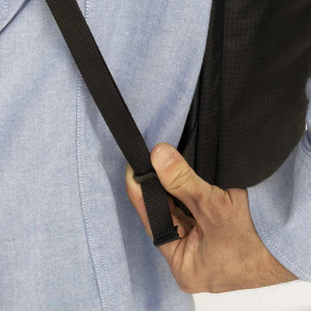 - 3D mesh back panel creates air passages between the user's back and backpack, promoting breathability and comfort