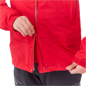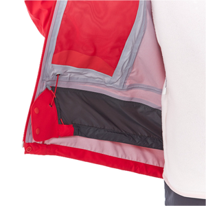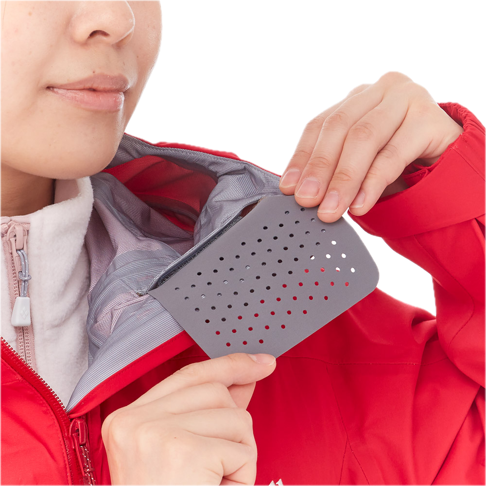 3-way adjustable hoodHelmet Compatible HoodFace guard zipRespiration systemDetachable Makeup GuardArticulated armsAdjustable alpine cuffsPocket Hem AdjustersWeather resistant Aqua-Tect zipper provides waterproofing without storm flaps2-way front zipperPowder skirt6 pockets (2 zippered hand pockets, 2 zippered chest pockets, 1 internal zip pocket, 1 internal drop-in pocket)Stuff sack includedCompressed size: 13 x 21 cm