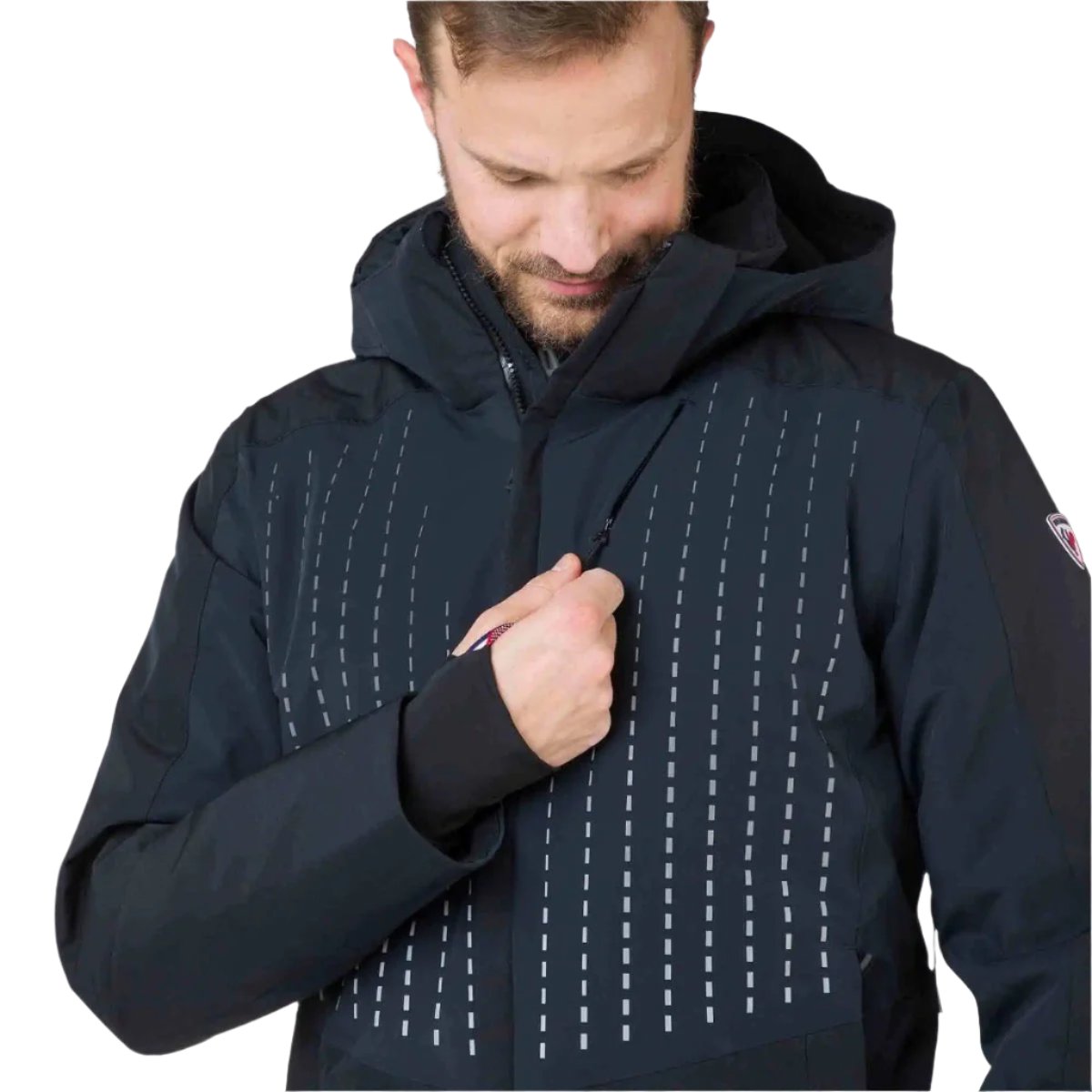 This jacket offers the insulated warmth and modern styling to ski all day. Its fully seam-sealed and waterproof design keeps you dry and comfortable though stormy weather, while low-profile synthetic insulation focused around the core provides efficient warmth that lets you flex and move naturally. An ultrasonic quilting effect creates a stylish modern look. A removable and helmet-compatible hood lets you choose the look. Finishing details include weatherproof zippers, a built-in powder skirt and elastic cuffs with thumbholes for extended comfort through cold days on the mountain. Extra features like a built-in goggle cleaner and a good selection of pockets, including one for your pass, make for uninterrupted ski days.