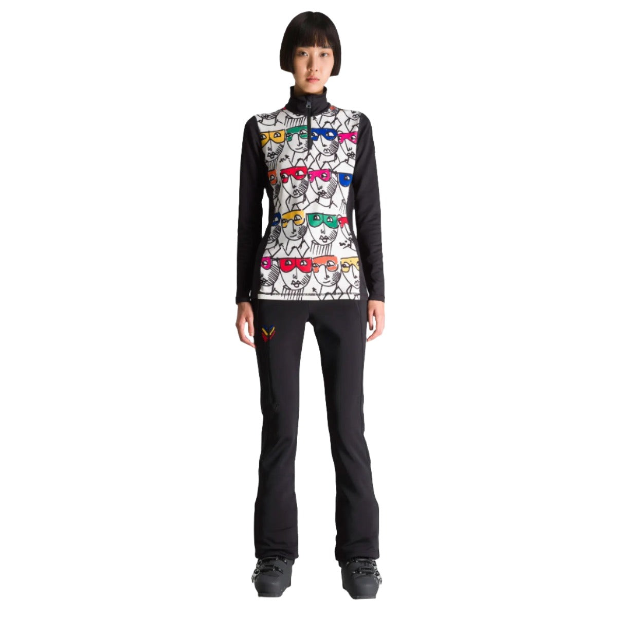 For two decades, and what remains, the collaboration of Jean-Charles de Castelbajac and Rossignol has brought festive energy and a fresh style to the slopes. And this Bessi women's half-zip t-shirt, designed in honor of the twentieth anniversary of the collaboration, is no exception. This elastic ski shirt, with a fitted cut and luxuriously soft, is perfect to wear as a warm base for greater comfort and breathability. The colorful prints show the designer's characteristic style.