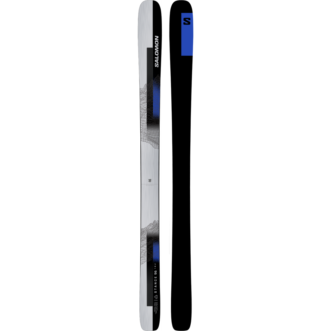 The marquee ski in Salomon’s all-mountain Stance line-up, the 96 is unrivaled in strength-to-weight ratio. This all-mountain driver offers a butter-smooth ride at any speed. Two titanal plates run the length of the ski to provide impressive edge grip when the going gets firm, and release torsional stiffness for poppy, powerful turns.