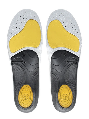 - EVA base ShoreA 40 + ECO ortholite layer: Cushioning + perforations: breathable